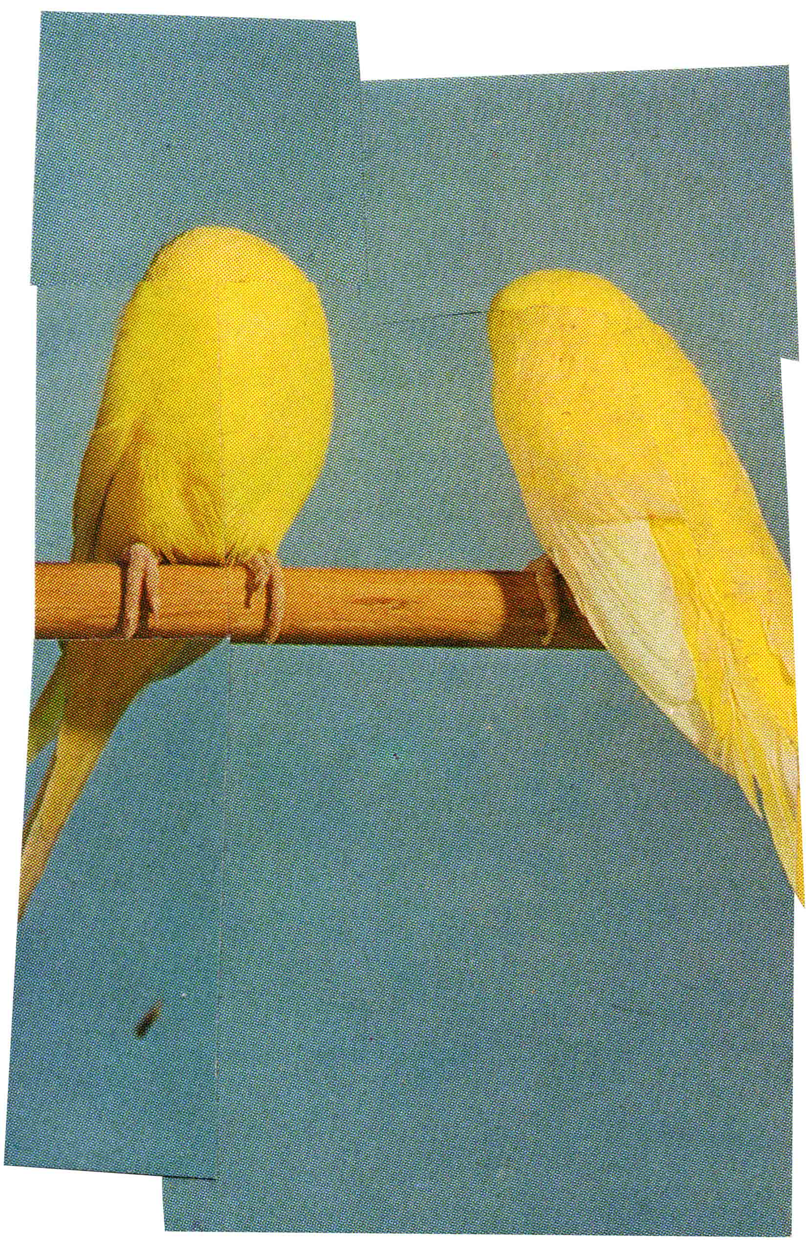 *Please note: In the blue background, subtle lines are visible, which appeared when enlarging the small original collage and reflect the characteristic texture of the original.