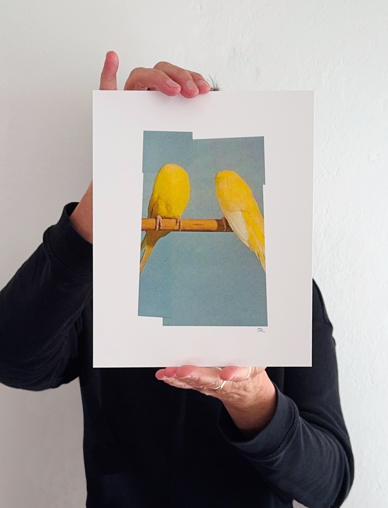 *Please note: In the blue background, subtle lines are visible, which appeared when enlarging the small original collage and reflect the characteristic texture of the original.